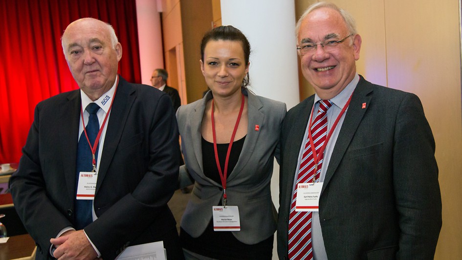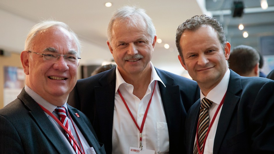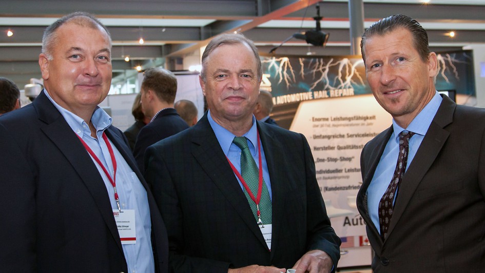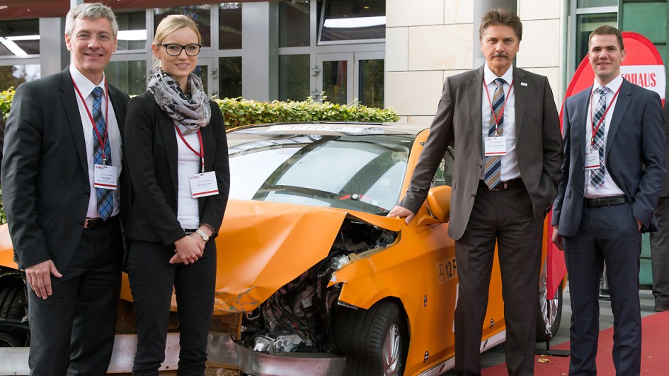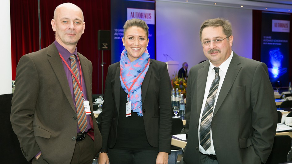 von 17: Walter K. Pfauntsch, Maik Schrader und Otto Bettels, beide Bettels + Schrader, die automobile Sachverständigengesellschaft, und Angelika Zehntgraf, Deutsche Post Fleet (v. l.)