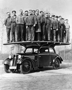 von 50: Die Modellpalette der Audi NSU Auto Union AG im Jahre 1971 (im Uhrzeigersinn): NSU Ro 80, NSU Prinz 1000 TT, NSU Prinz 4, Audi 75 Variant, NSU 1200, Audi 60 L, Audi 100 LS, Audi 100 Coupe S (Mitte).