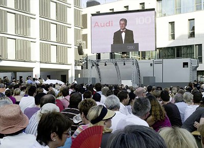 von 21: ... wurde das Event auf der sonnendurchfluteten Piazza des Audi Forums live übertragen. (Foto: UnitedPictures)