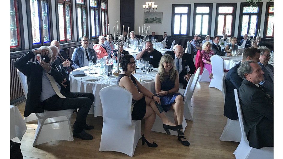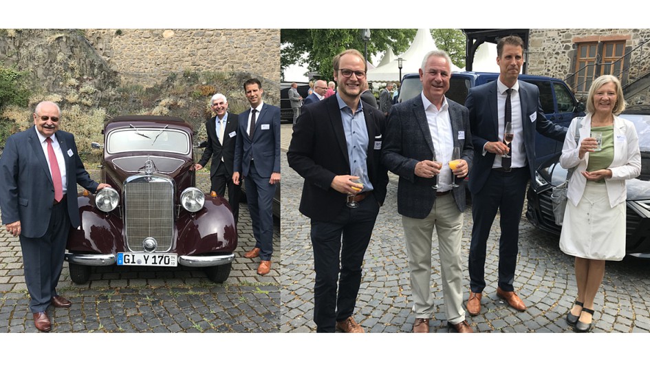 von 12: Michael Kraft, ZDK-Vorstandsmitglied und stellv. Vorsitzender im Landesverband Hessen, kam mit einem 170-er Modell (1949 ff.) von Mercedes-Benz zur Veranstaltung. Hier im Bild mit ZDK- Präsident Jürgen Karpinski und dem Geschäftsführer der Kreishandwerkerschaft und zugleich Innungsgeschäftsführer Björn Hendrischke. Landrätin Anita Schneider gesellte sich im Burghof zu den Festgästen. Im Bild mit KH-GF Björn Hendrischke, Dipl.-Ing. Gerold Häuser mit Sohn Christoph Häuser (Pohlheim).