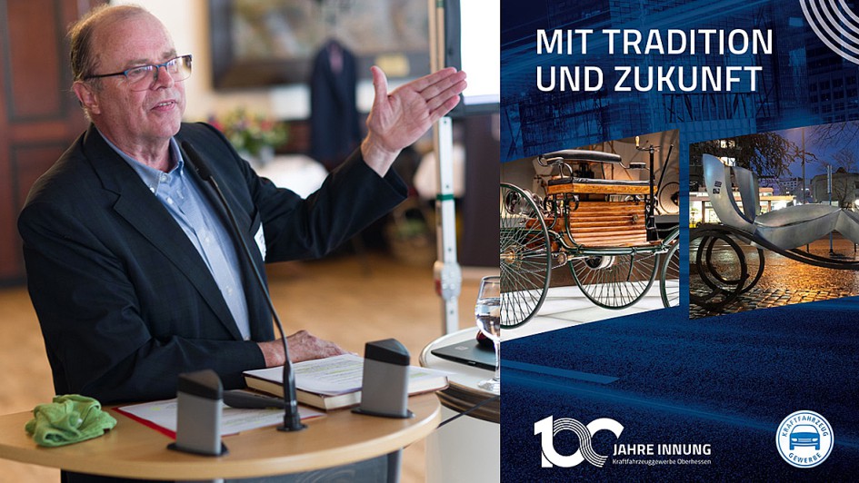 von 12: AUTOHAUS-Herausgeber Prof. Hannes Brachat hielt den Festvortrag, skizzierte das Zunftwesen, die Meistersinger, die ersten Gewerbekammern, die verbindliche Festlegung für Kfz-Innungen im Rahmen der Gleichschaltung (1933 ff.), das Grundgesetz des Handwerks, die 126 Paragraphen schwere Handwerksordnung 1953, die Umweltaktivitäten des Auto-Gewerbes, die technischen und organisatorischen Neuerungen. Für die Zukunft wünschte sich Brachat für jede Innung einen eigenständigen Internetauftritt, der sich aber gleichermaßen an die Autofahrer wendet. Existenzgründungsanträge, Baugenehmigungen sollten die Innungen für ihre Mitgliedsbetriebe übernehmen. Gerade kleinere Kfz-Betriebe sollten mehr kooperieren. Und die alten Herren mögen in der Vorstandschaft endlich die Plätze für jüngere Nachfolger frei machen. Brachat: "Sie haben nun über 100 Jahre das Licht Kfz-Innung am Leuchten gehalten. Es möge weitere 100 Jahre scheinen. Herzliche Gratulation." Brachat stellte dann die Innungschronik 100 Jahre Kfz-Innung Oberhessen vor, die er verfasst hat.
