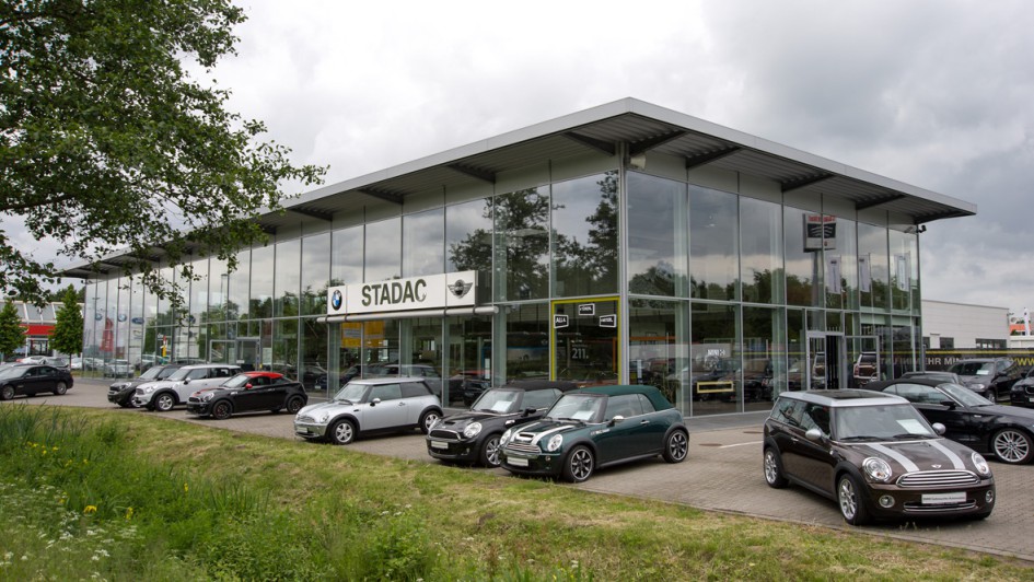 von 19: Nach dem Tod des Großvaters entschied sein Enkel Werner Leuchtenberger die Tradition fortzusetzen und gründete 1979 auf der anderen Elbseite in Stade das Stader Automobilcenter, kurz STADAC (heutige Ansicht).