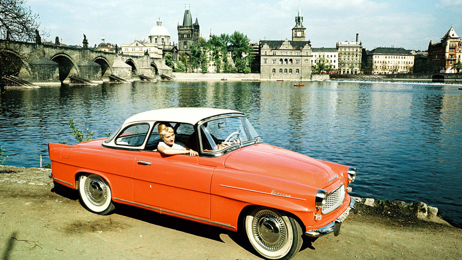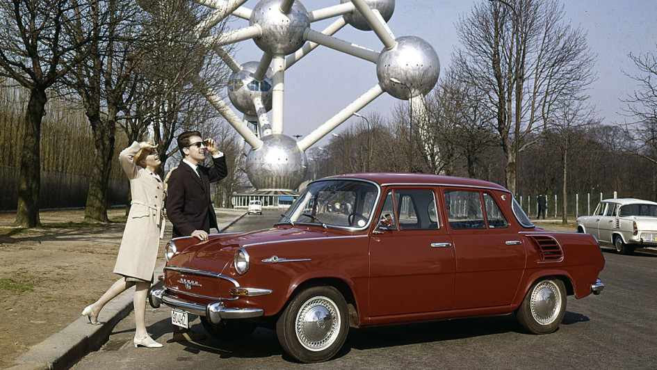 von 12: Am 1. April 1964 erfolgt der Produktionsanlauf des Skoda 1000 MB. Neu bei Skoda sind die selbsttragende viertürige Karosserie und das Heckmotor-Layout.