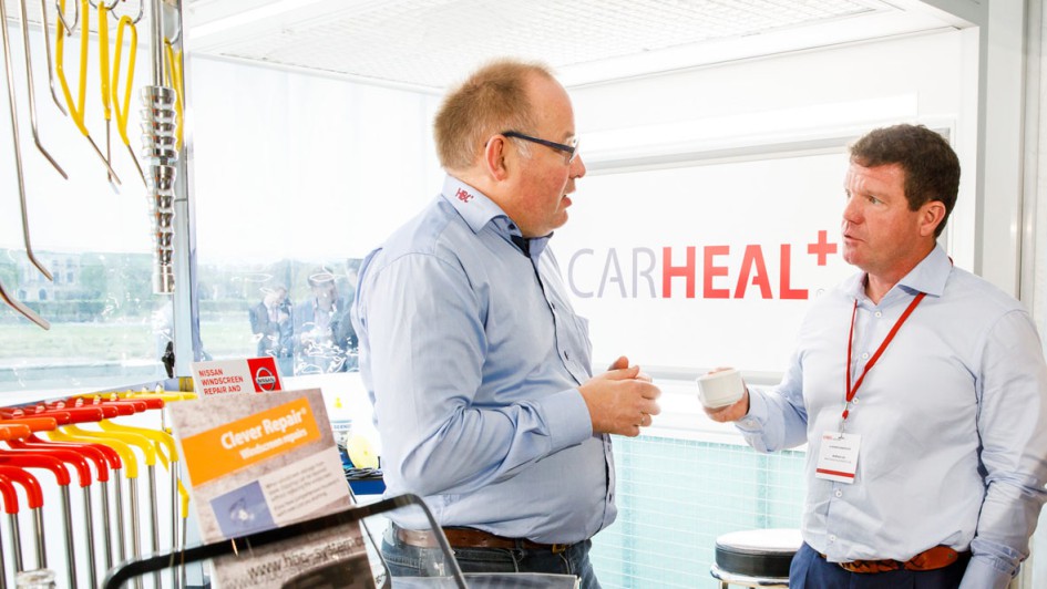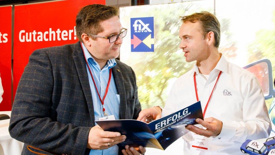 von 17: FixAuto Deutschland-Geschäftsführer Roy de Lange (re.) zeigte nicht nur bei seinem Vortrag, sondern auch im Rahmen der Fachausstellung vollen Einsatz.