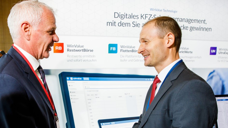 von 17: Viel Neues gab es am Stand von WinValue, wo Alexander Kiefel (r.) gemeinsam mit seinem Bruder Johann unter anderem das vor wenigen Wochen eingeführte Komplettsystem „UltraExpert" für Kfz-Sachverständige vorstellte.