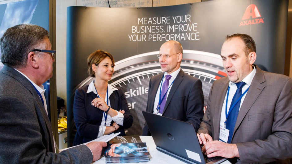 von 17: Einen starken Konzernauftritt legte Axalta mit seinem Werkstattsystem IDENTICA sowie den Netzwerken Repanet (Standox), Five Star (Cromax) und Profi-Club (Spies Hecker) hin. Unter anderem standen Juliane Randhahn, Stephan Ortmann und Karsten Stöcker Rede und Antwort.