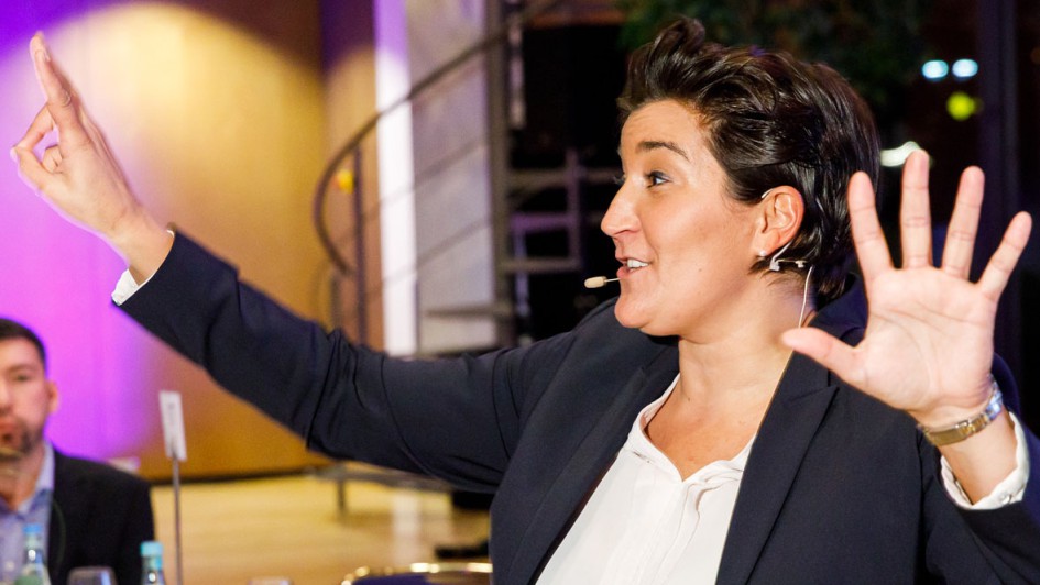 von 17: Die Top-Trainerin und Referentin Daniela A. Ben Said verblüfft nicht nur ihre Kunden, sondern heizte auch den Besuchern des 13. AUTOHAUS Schadenforums während des Gala-Abends ordentlich ein.