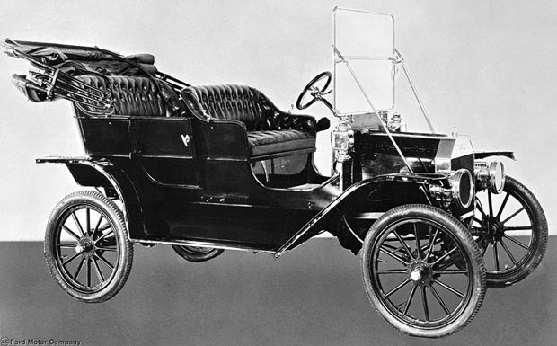 von 8: 1908 kommt das berühmte T-Modell. Der Fünfsitzer kostet 850 Doller und verkauft sich sofort prächtig.