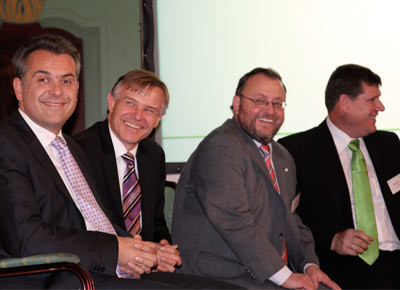 von 18: Herr Gansberg und Gabor Polonyi (Skoda Bank), Günther Rube und Kersten Borst (Händlerverbandsvorstand) (v.l.)