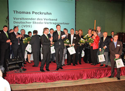 von 18: Skoda Marketing- und Vertriebsvorstand Jürgen Stackmann stieß auf die 20-jährige Erfolgsstory des Händlerverbands an.