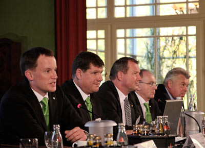 von 18: Der Vorstand des Skoda Händlerverbands mit Deutschlandchef Hermann Schmitt (3.v.r.), rechts Gabor Polonyi und Herr Gansberg von der Skoda Bank.