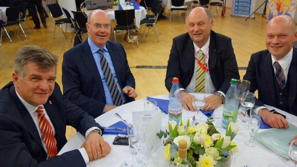 von 11: Ein Blick an den Ehrentisch mit Landesverbandspräsident Holger Schade (re), Helmut Peter, Andreas Krey, GF Landesentwicklungsgesellschaft und DAT-Geschäftsführer Jens Nietzschmann.