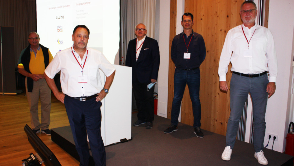 von 12: Prof. Brachat (l.) mit den Sponsoren (v. l.): Ralf Breisch, TÜV Süd, Michael Bader, Liqui Moly, Waldemar Dixa, Multipart, und Georg Frei, Liqui Moly. Nicht auf dem Bild vertreten: Sponsor Cluno.