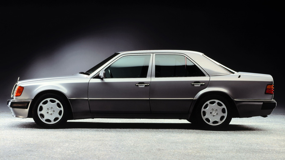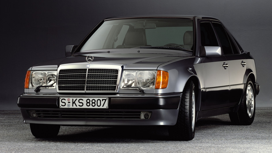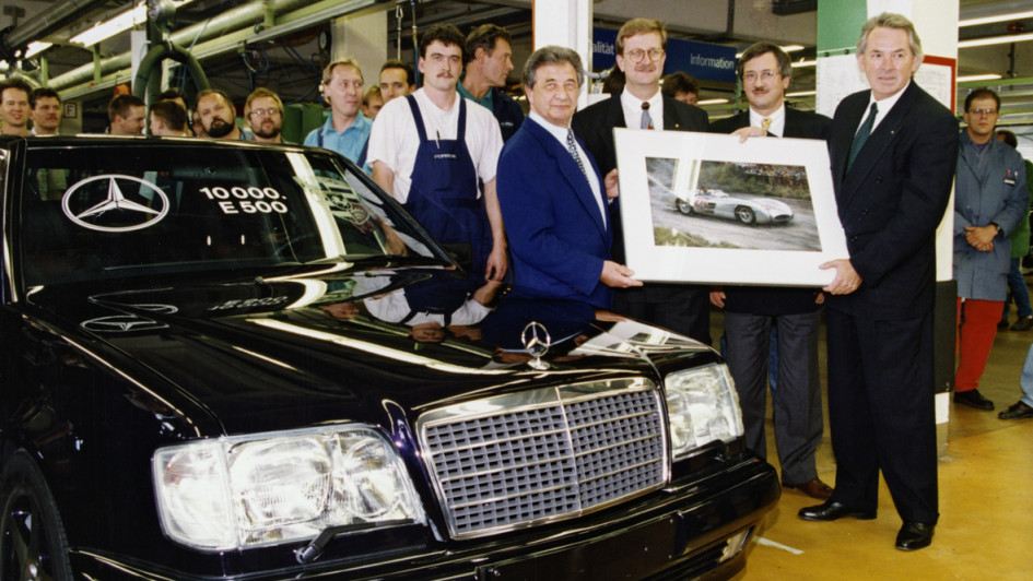 von 9: Im Jahr 1993 avancierte die Sportlimousine als E 500 - so wie die gesamte, nun fast zehn Jahre alte W124-Reihe - mit Plakettengrill und anderen Modifikationen zur ersten, offiziell E-Klasse genannten Mercedes-Reihe.
