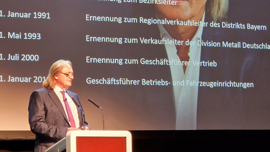 von 6: Martin Schäfer, Geschäftsführer Fahrzeugeinrichtungen der Adolf Würth GmbH & Co. KG, auf seine 40-jährige Laufbahn bei der Würth-Gruppe zurück.