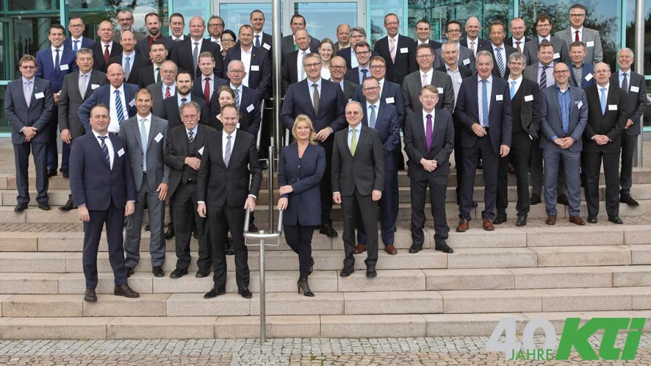 von 2: ARD-„Wetterfeh“ Claudia Kleinert moderierte die 40-Jahres-Veranstaltung. Expertenvorträge zum Thema automatisiertes Fahren hielten (v.l.): Dipl.-Ing. Eberhard Hipp (ehemals MAN), Dr. Thorsten Leonhardt (Audi AG), Prof. Andre Seeck (BaSt), Dr. Dirk Wisselmann (BMW AG), Dipl.-Ing. Frank Leimbach (Geschäftsführer KTI), Dipl.-Ing. Torsten Gollewski (ZF Friedrichshafen) und Ismail Ertug als Mitglied des Europäischen Parlaments.
