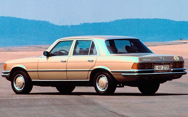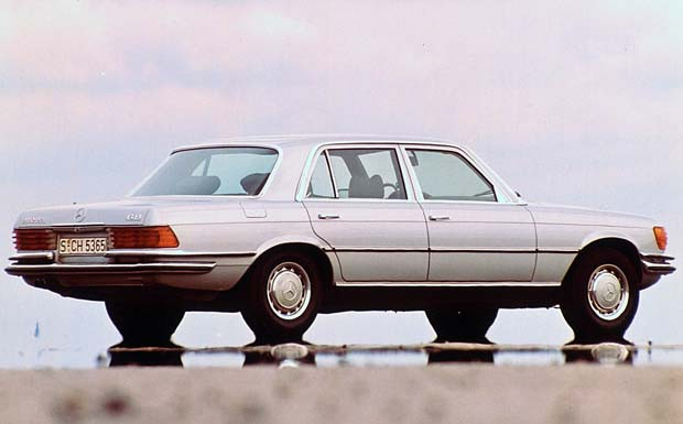von 4: Das moderne Design des Mercedes W 116 mit flachem Bug und Heck setzte vor vier Jahrzehnten ebenso Maßstäbe, wie die großen geriffelten Rückleuchten.