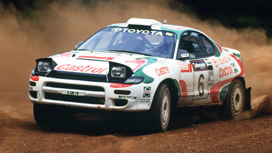 von 13: Auch die fünfte Generation nahm an der Rallye-WM teil. Mit dem 213 kW / 290 PS starken Celica GT-Fourit gewann Toyota zwischen 1992 und 1994 16 Weltmeisterschaftsläufe.