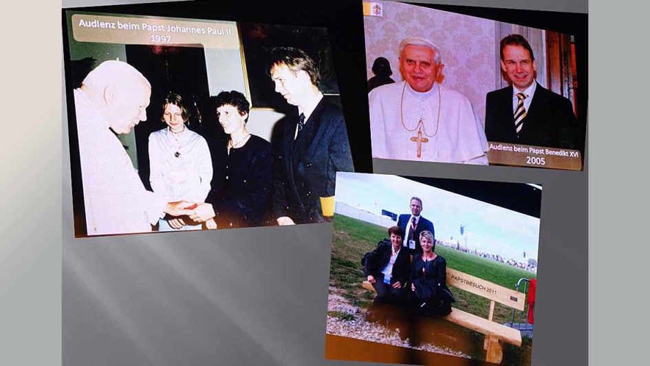 von 17: Es ist ein offenes Geheimnis, dass Dieter Althaus große Anteile daran hat, dass Papst Benedikt am 23.11.2011 die Wallfahrtskapelle Etzelsbach besuchte und vor 100.000 Gläubigen eine Marienvesper hielt. Die Abbildungen zeigen die Vatikanbesuche des Jubilars.