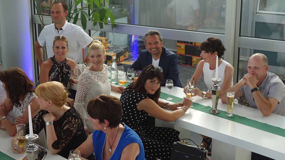 von 17: Andreas Peter feierte am selbigen Tag seinen 39. Geburtstag. Seine Frau Anja einen Tag später. Hier mit dem geladenen Freundeskreis. Der Jubilar und Andreas Peter – 60 + 39 = 99! -, fast 100!