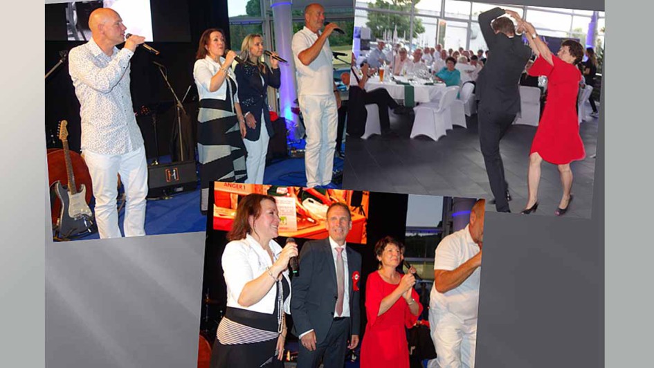 von 17: Roland (Rynkowski) ist mit seiner Band "Rest of best" aus Weimar dem Jubilar seit Jahren freundschaftlich verbunden. Roland wandelte nach 21 h 30 die Gemüter, von sitzend, stehend, Händchen haltend bis zum Rock‘n Roll Solotanz von Dieter Althaus und seiner Frau Katharina. Seine sportive Seite bewies der Jubilar nicht nur damit, sondern über sein aktives Fußballengagement. Von "Mama Loo", "Let‘s have a Party" bis zu "Marmor, Stein und Eisen bricht, aber..." Ein Stimmungs-Highlight, an dem sich alle Festgäste höher getragen wurden. Grandios!