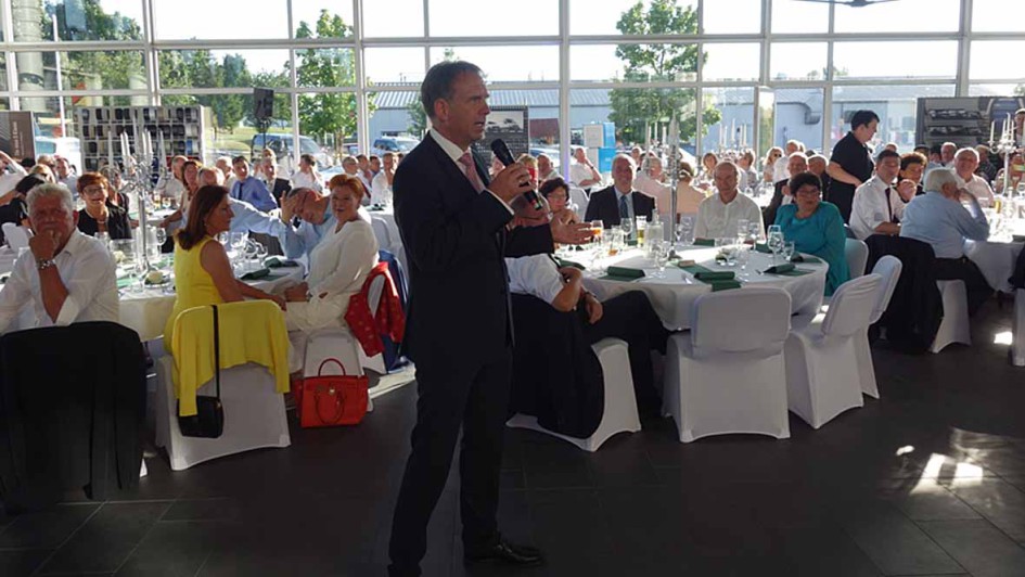 von 17: Dieter Althaus, Vice-Präsident Governmental Affairs Magna Europe und von 2003 bis 2009 Thüringer Ministerpräsident, feierte im Autohaus Peter in Heilbad Heiligenstadt seinen 60. Geburtstag. Die Geburtstagstrilogie war um 11 Uhr mit einem Empfang der CDU-Thüringen, um 17 Uhr mit einem Gottesdienst und ab 19 Uhr als Geburtstagsevent für 400 Festgäste angelegt. In der Würdigung all seiner umfassenden Verdienste ragte unisono das Zusammenwirken seines Vorgängers Bernhard Vogel, Thüringens Ministerpräsident von 1992 bis 2003, mit dem Jubilar heraus. Thüringens CDU-Landesvorsitzender Maik Mohring: "Sie beide haben mit ihrem kontinuierlichen Zusammenwirken die erfolgreichen Fundamente für unseren Freistaat gelegt." Dieter Althaus, ein Mann vieler und vielfältiger guter Taten!