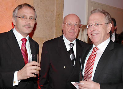 von 23: Gaben sich die Ehre zur Geburtstagsparty von AUTOHAUS-Herausgeber Prof. Hannes Brachat am 8. Januar 2009 in der Münchener Musikhochschule: Frau Rademacher, ZDK-Präsident Robert Rademacher, Knut Schüttemeyer mit Begleitung
