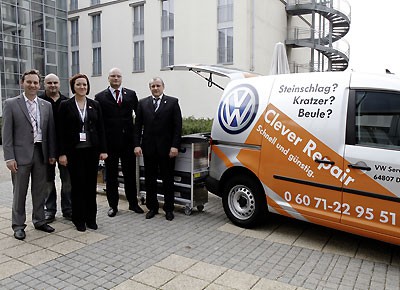 von 20: Das Team vom Volkswagen Service Deutschland zeigte die Leistungsfähigkeit des Clever Repair Mobiles auf