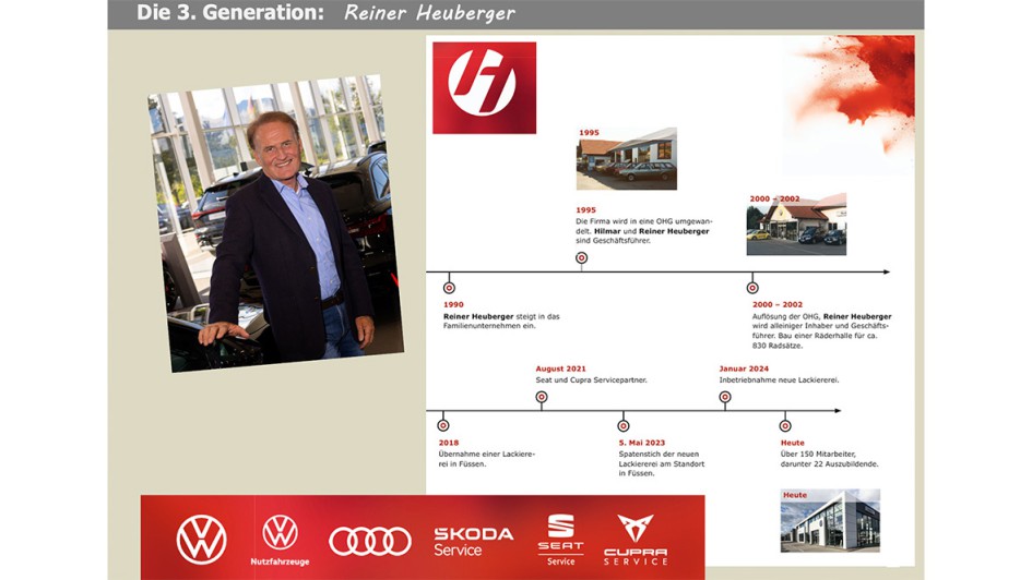 von 14: 1990 stieg Reiner Heuberger ins Familienunternehmen ein und wurde ab 2000 alleiniger Inhaber und Geschäftsführer. Der Seat- und Cupra-Servicevertrag wurde 2021 geschlossen.