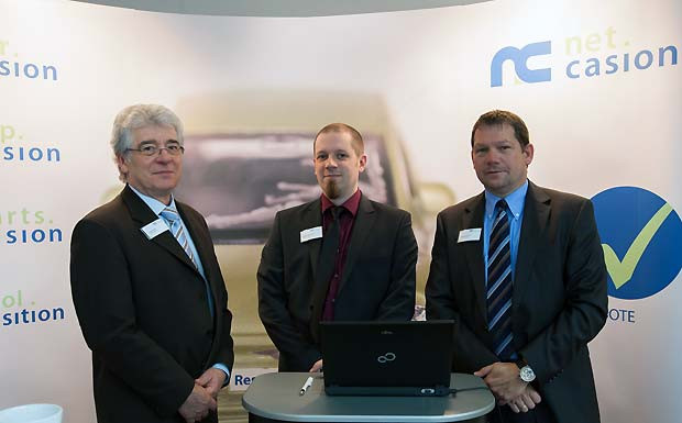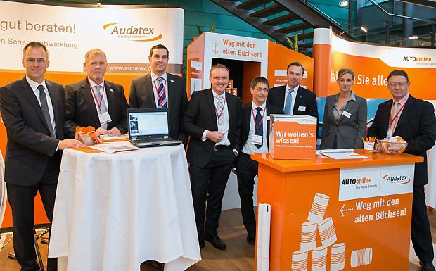 von 43: Das Messeteam von Audatex und AUTOonline (v.l): Thorsten Böhm, Manfred Justus, Jochen Höner, Rolf-Peter Werlitz, Frank Behrens, Florian F. Stumm, Anne-Maria Prekel, Bernd Albrecht