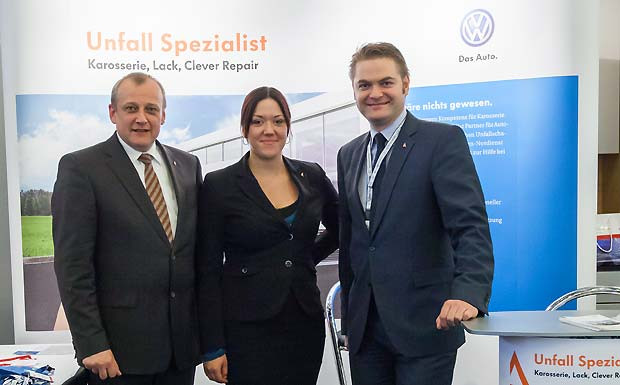 von 43: Volkswagen Service Deutschland (v.l.n.r.): Armin Leukel, Fachberater Unfallschadenmanagement Serviceregion Nord, Franciska Günzel, Sachbearbeiterin Geschäftsfeld Karosserie und Lack, Konrad Reicherzer, Fachberater Unfallschadenmanagement Serviceregion Süd