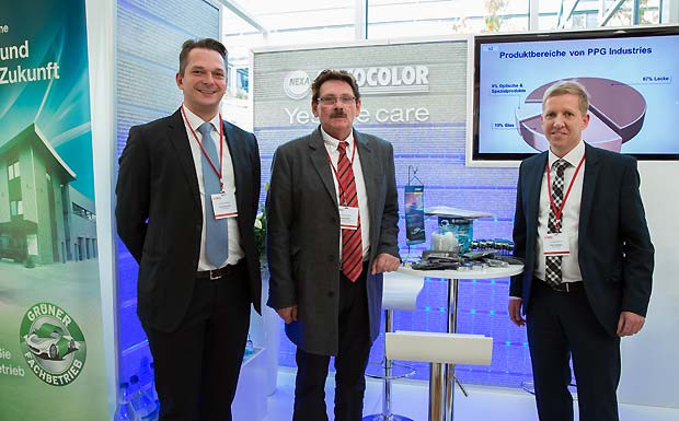 von 43: PPG Deutschland Sales & Services GmbH: Arek Fiedorowicz, Günter Hunn (Weber Werkstatt und Reparatur Management GmbH), Peter Gerlinger (v.l.)