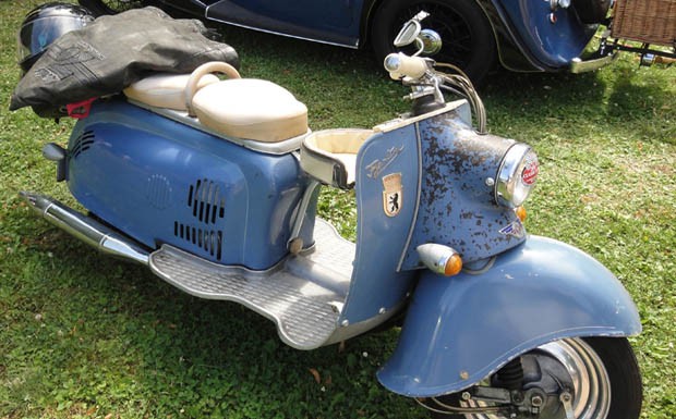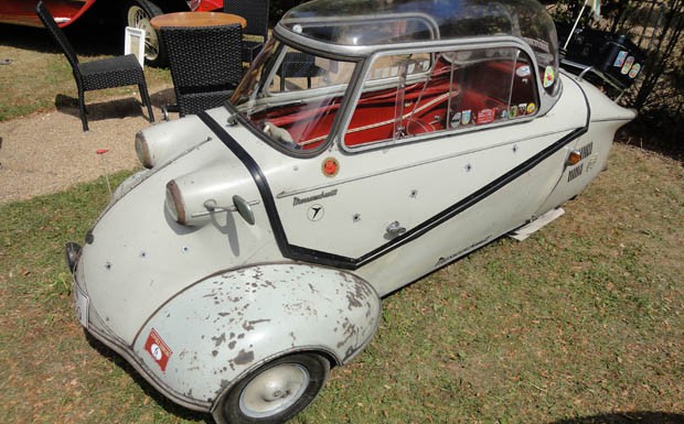 von 11: In Würde gealtert ist dieser Messerschmitt Kabinenroller. Originalzustand mit Patina genießt bei Oldtimerfans hohe Priorität.