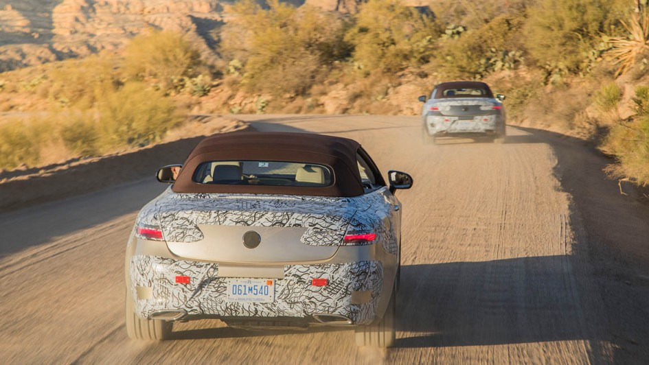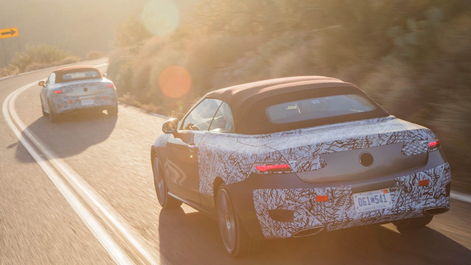 von 9: Das Verdeck und Extras wie das ausfahrbare Windschott hinter den Rücksitzen, den Aircap-Spoiler über der Frontschiebe oder die Nackenheizung Airscarf kennt man so vom Cabrio der C-Klasse.