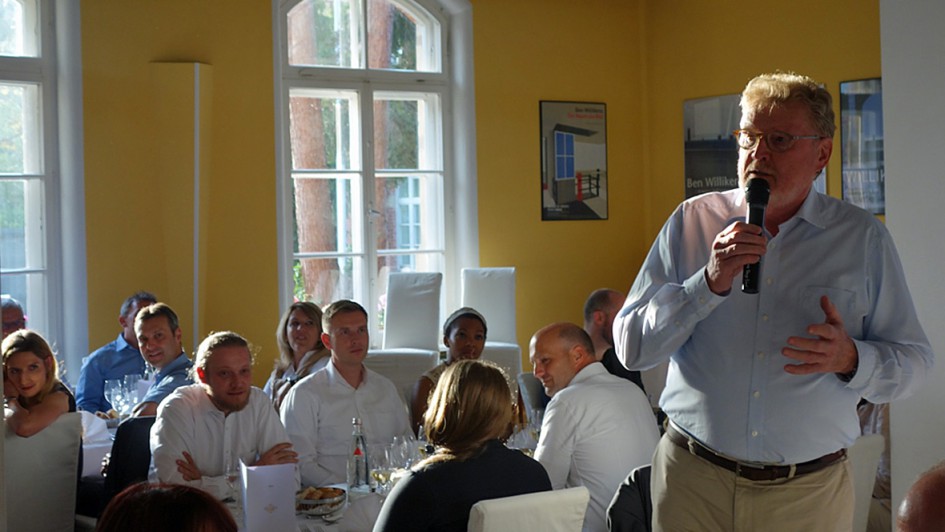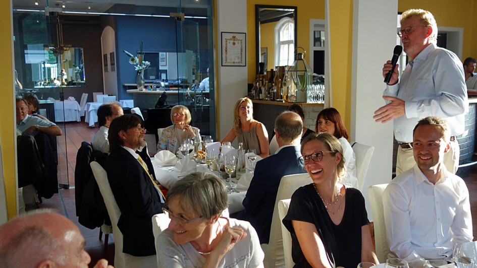 von 15: Abschlussfeier von Rudolf Wohlfarth, CEO der Emil Frey Gruppe Deutschland. Der Start: Aperitif im Hofgarten des italienischen Gourmettempels „Da Capo“ in Stuttgart.