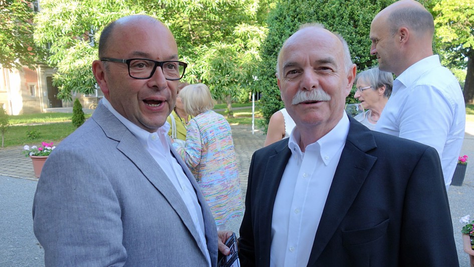 von 15: Die Förderung der Oper Stuttgart, dort in Sonderheit das Studio war Rudolf Wohlfarth ein besonderes Anliegen. Zu Gast, der Intendant der Oper Stuttgart, Jossi Wieler mit R. Wohlfarth.
