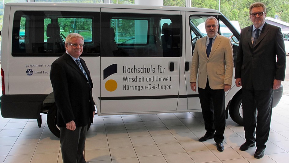 von 15: Die Schwabengarage betreibt am Hochschulstandort einen Ford-Mitsubishi-Betrieb. Wohlfarths Förderung bestand u.a. in der Übergabe zweier Fahrzeuge auf anhaltender Leasingbasis mit 0 Anzahlung und 0 Leasingrate an die Hochschule. Hier die offizielle Übergabe 2012 an den Rektor der Hochschule Prof. Werner Ziegler und den Kanzler der Hochschule Roland Bosch.