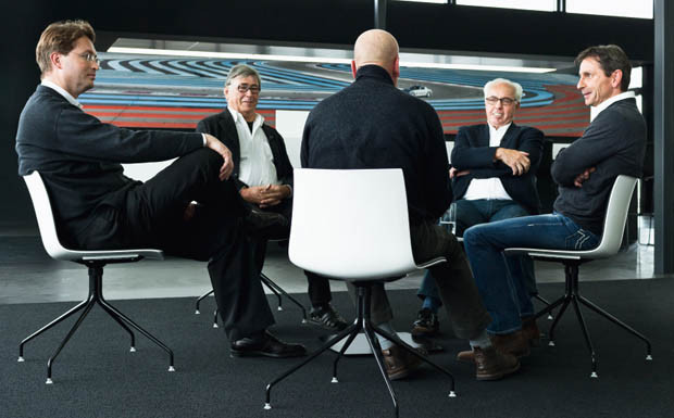 von 14: AMG Geschäftsführer Ola Källenius im Gespräch mit den Gründern Erhard Melcher und Werner Aufrecht sowie Marketing-Direktor Mario Spitzner (von links nach rechts).