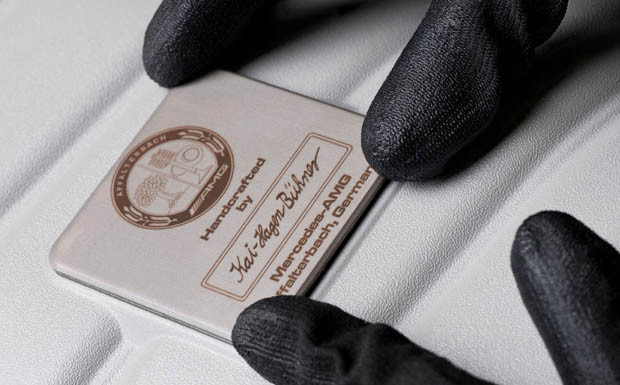 von 14: Alle AMG-Triebwerke erhalten eine Plakette mit dem Namen des Ingenieurs, der für den Motor beim Zusammenbau verantwortlich war - ein Mann, ein Motor.