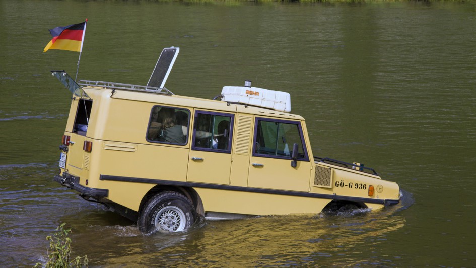 von 8: Von Anfang der 80er- bis in die 90er-Jahre wurde in Kehl am Rhein der Amphi-Ranger 2800 SR gebaut – eine Art schwimmfähige G-Klasse. Vor allem Behörden, aber auch einige wenige private Käufer leisteten sich das mit rund 200.000 D-Mark sehr teure Gefährt.