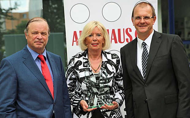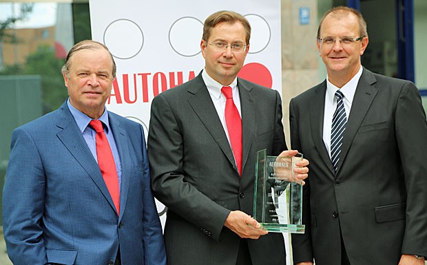 von 13: Die Toyota Kreditbank verteidigte auch in diesem Jahr den Sieg in der Gesamtwertung sowie bei den großen Importfabrikaten. Den Pokal überreichten Ralph M. Meunzel und Prof. Hannes Brachat an Geschäftsführer Ruben Christian (M.).