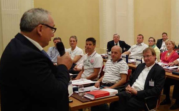 von 29: Der Gründer und Inhaber von Multipart, Waldemar Dixa, erläuterte den Teilnehmern die Bedeutung der Neuwagenanschluss- und der Gebrauchtwagengarantie. "Der Flatrate-Gedanke muss soweit greifen, dass der Kunde im Service nicht an irgendeine Werkstatt, sondern an ihr Haus gebunden wird."