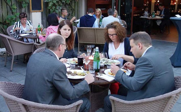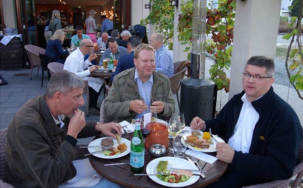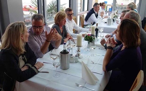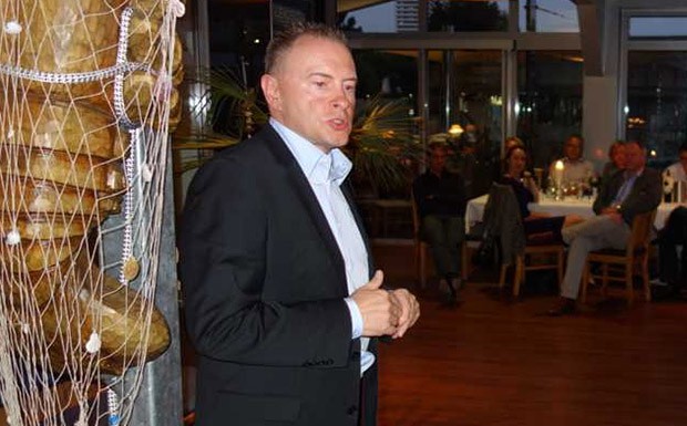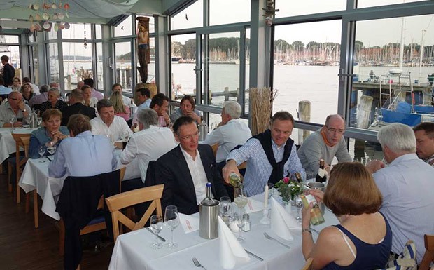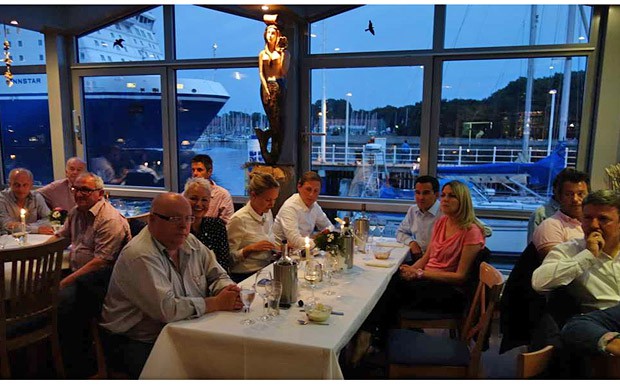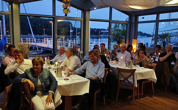 von 29: Ford-Händler Siegfried Ernst war VIP-Redner der Abendveranstaltung in der In-Gaststätte "Fisherman's" zu Travemünde. Und der Freiburger löste seine Aufgabe mit Bravour. Ernst: "Die Auto-Regionalmesse Freiburg existiert seit 28 Jahren. Sie ist für uns Ende Februar stets der Verkaufsmaßstab für das jeweilige Jahr. Auf 1.500 Quadratmetern und mit 60 beteiligten Mitarbeiter haben wir unseren Auftritt von Jahr zu Jahr professioneller entwickelt. Heute stehen 20 voll ausgestattete Verkäuferarbeitsplätze auf dem Messestand zur Verfügung. Von den 140 verkauften Fahrzeugen 2013 waren 24 Nutzfahrzeuge." Wie man Kunden auf der Messe ganz konkret anspricht, ins Auto bringt und deren Kaufbereitschaft hinterfragt, führte dann Eberhard Groß live am Beispiel von Hannes Brachat vor. Ernst berichtete auch von seinen Erfahrungen, wie er inzwischen drei arbeitslose spanische Mechatroniker direkt in Oliva in Spanien akquirierte und in seine Betriebe mit sehr guten Erfahrungen integrierte.