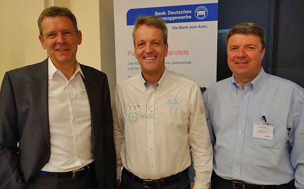von 29: Die Bank Deutsches Kfz-Gewerbe gehört gleichermaßen zu den langjährigen Sponsoren der AUTOHAUS SommerAkademie. Die BDK war mit einem eigenen Stand vertreten. Deutschland-Vertriebschef Hans-Heiner Lüdemann (l.) mit seinen Kollegen Jörg Bugiel, Vertriebsleitung Region Süd und Achim Kreyenpoth, Vertriebsleitung Region Südwest.