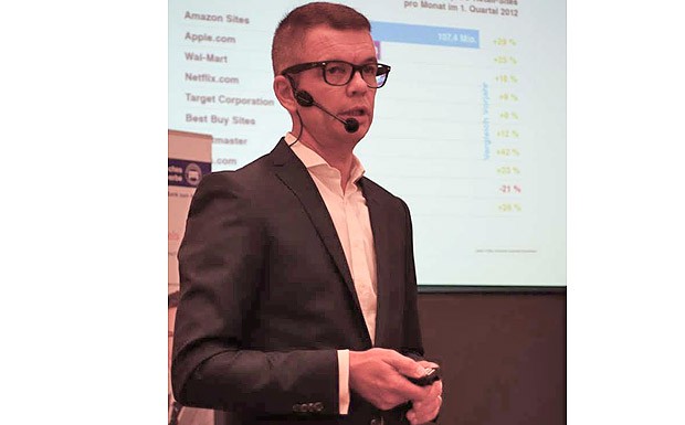 von 29: Stefan Quary, Sprecher der Geschäftsführung Dürkop Automobile, referierte zum Thema "Das vernetzte Autohaus der Zukunft – alle Macht den Daten". Im Kern geht es darum, das Nutzerverhalten des Kunden besser zu verstehen. Beispiel: Wie können wir die Service-Berater über gezielte Kundeninformationen so unterstützen, dass sie mehr leisten können? Kunden geben dem Handel also proaktiv ihre Daten.