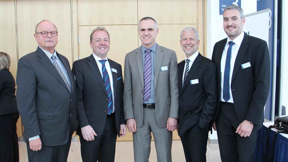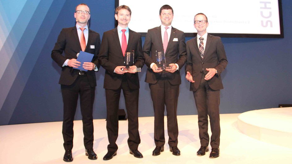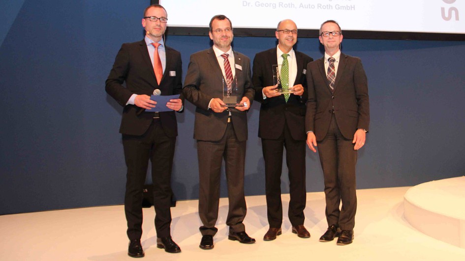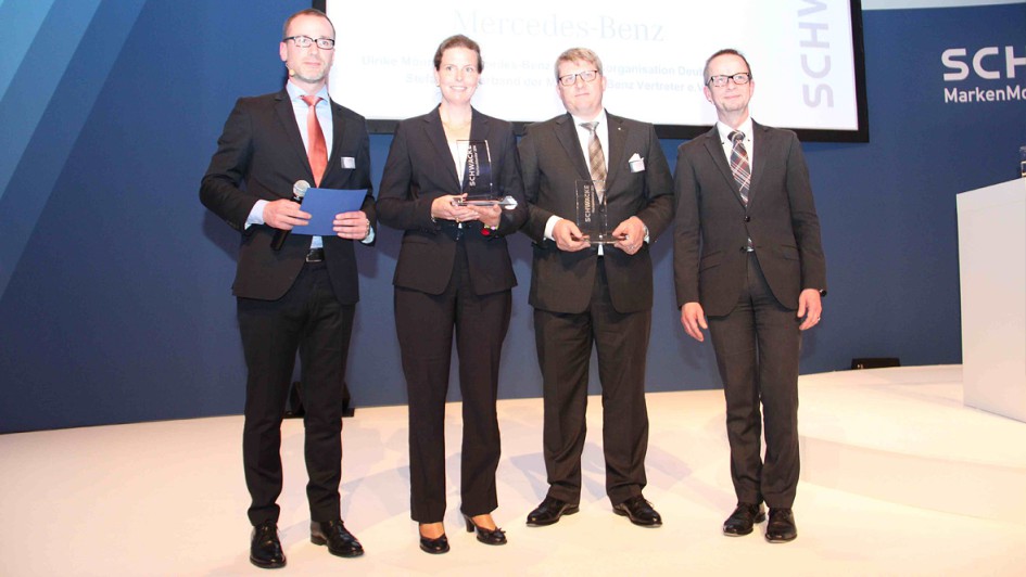 von 18: Überraschungssieger ist in diesem Jahr Smart: Breves (l.) und Studienleiter Prof. Stefan Reindl (r.) gratulierten Olivier Reppert (2.v.l.; Mercedes-Benz Vertrieb Deutschland) und Friedrich Maier (Verband der Smart-Vertriebspartner)