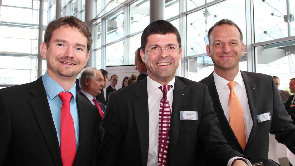 von 18: Das Team von Puls-Chef Konrad Weßner (l.) führte die Telefoninterviews zum Markenmonitor 2014 durch. Rechts Autoscout24-Manager Peter Lorenzen.