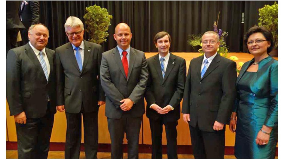 von 18: Beim Stehempfang in politischem Gespräch: Helmut Peter und Sylvia Gerl mit dem Bürgermeister der Stadt Northeim, Hans Erich Tannhäuser.
