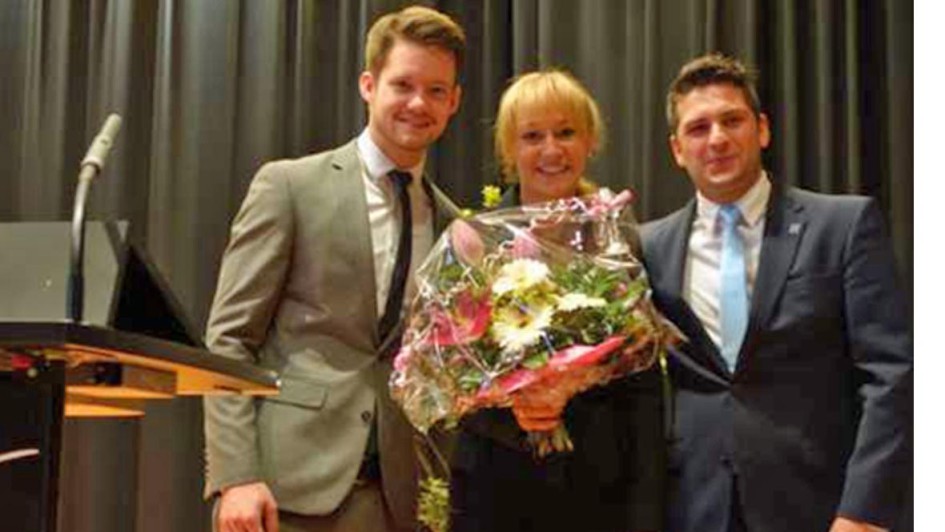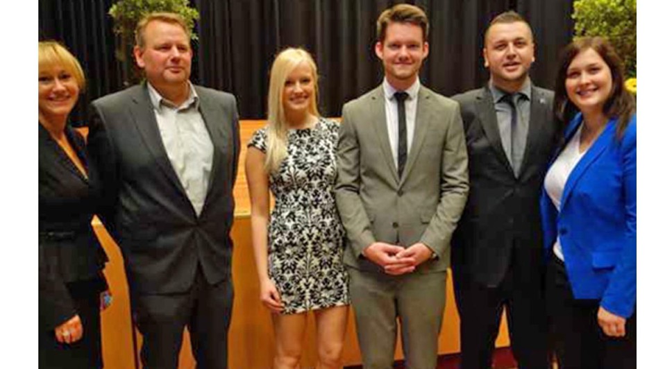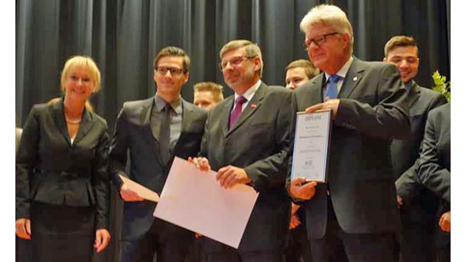 von 18: Es mehrt sich – auch aufgrund der Jobbörse – die Zahl der Studenten, die zur Weiterbildung von den Autohäusern nach Northeim zum Studium geschickt werden. Das Autohaus Peter in Nordhausen war im Jahrgang 2013 -2014 mit zwei Studenten vertreten: Christopher Fromm (l.) und Marcel Dawoud mit ihrem Chef Helmut Peter.