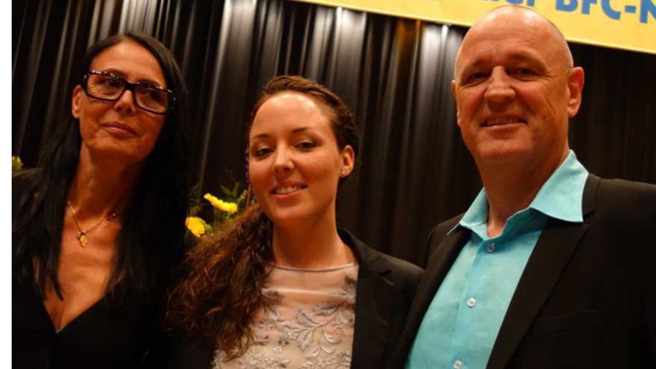 von 18: Katja Soliman hatte einst an der BFC Calw den weitesten Weg. Sie kommt aus Itzehoe. Hier mit ihrem Sohn Munir und Ehemann Magdi Soliman, einem Hyundai-Händler.